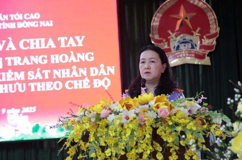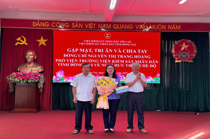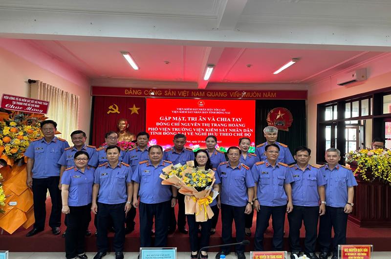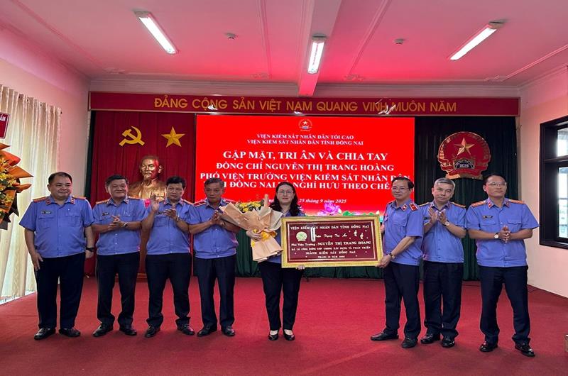 Ngày 25/9/2025 Viện kiểm sát nhân dân (VKSND) tỉnh Đồng Nai trang trọng tổ chức buổi Tri ân chia tay đối với đồng chí Nguyễn Thị Trang Hoàng – Kiểm sát viên trung cấp, Phó Viện trưởng VKSND tỉnh Đồng Nai nghỉ hưu theo chế độ