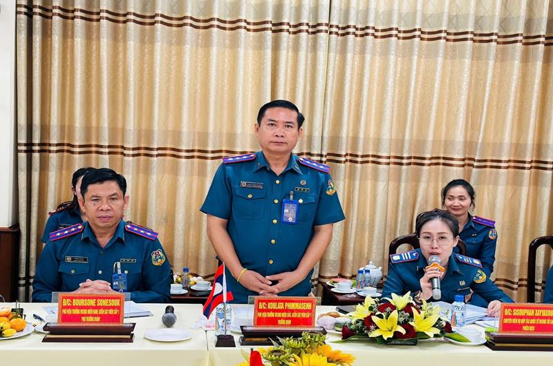 Đồng chí Koulata Phimmasenh, Phó Viện trưởng Viện kiểm sát nhân dân miền Bắc, Nước Cộng hòa dân chủ nhân dân Lào phát biểu tại buổi làm việc