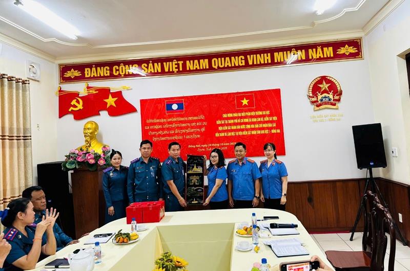 Đoàn cán bộ Viện kiểm sát nhân dân nước Cộng hòa dân chủ nhân dân Lào và Viện kiểm sát nhân dân Khu vực 1 - Đồng Nai đã trao nhau món quà lưu niệm thể hiện sự gắn kết và tiếp tục vun đắp cho tình đoàn kết hữu nghị trong thời gian tới