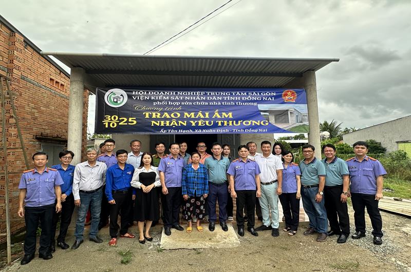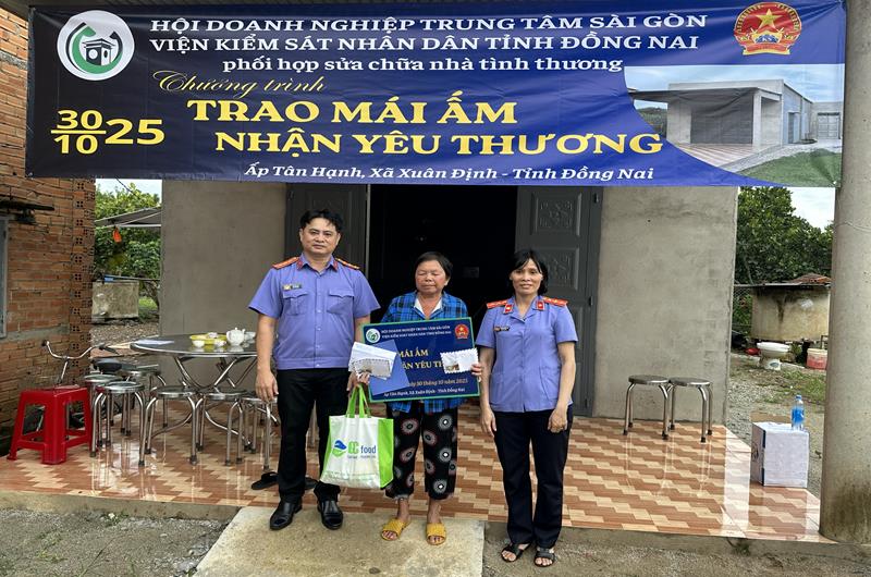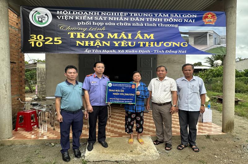 Ngày 30/10/2025, Viện kiểm sát nhân dân (VKSND) tỉnh Đồng Nai chủ trì, phối hợp cùng Hội doanh nghiệp khu vực Trung tâm Sài Gòn (SCBA) và chính quyền địa phương tổ chức chương trình “Trao mái ấm, nhận yêu thương”, hỗ trợ xây dựng và bàn giao nhà tình thương cho bà Nguyễn Thị Huê, ngụ tại xã Xuân Định, tỉnh Đồng Nai. Đây là một trong những hoạt động thiết thực nhằm lan tỏa tinh thần tương thân tương ái, góp phần chăm lo đời sống cho các hộ gia đình có hoàn cảnh khó khăn trên địa bàn tỉnh.