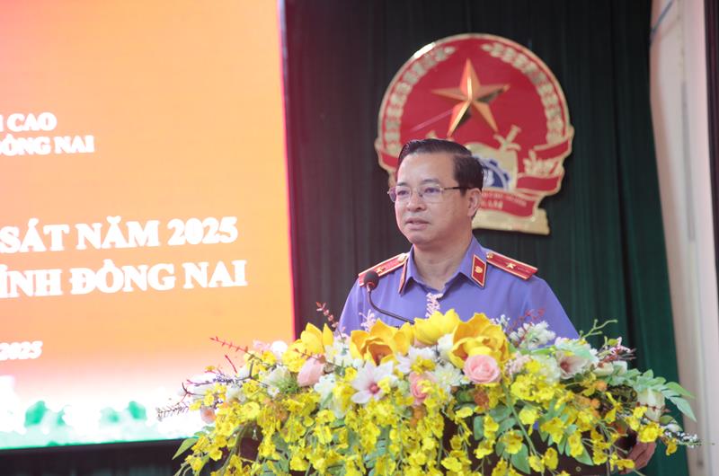 Phát biểu tại Buổi lễ, đồng chí Nguyễn Quốc Hân – Tỉnh ủy viên, Bí thư Đảng ủy, Viện trưởng VKSND tỉnh Đồng Nai nhấn mạnh: Năm 2025 là một năm đầy nỗ lực và đổi mới của toàn ngành Kiểm sát Đồng Nai. Trong bối cảnh tình hình tội phạm, nhất là tội phạm về kinh tế, tham nhũng, trật tự xã hội còn diễn biến phức tạp, Viện kiểm sát hai cấp đã chủ động nắm chắc tình hình, kịp thời tham mưu, phối hợp chặt chẽ với các cơ quan tiến hành tố tụng, góp phần giữ vững an ninh chính trị, trật tự an toàn xã hội trên địa bàn. Nhiều đơn vị, cá nhân đã thể hiện tinh thần trách nhiệm, bản lĩnh nghề nghiệp, hoàn thành xuất sắc nhiệm vụ được giao. Những thành tích này là minh chứng rõ nét cho tinh thần đoàn kết, kỷ cương, trách nhiệm và đổi mới trong toàn Ngành.