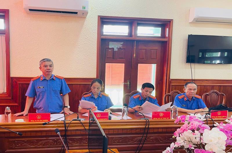 Đồng chí Vũ Văn Chương - Phó Viện trưởng phụ trách phát biểu chỉ đạo các nội dung trực tiếp kiểm sát tại Cơ sở giam giữ