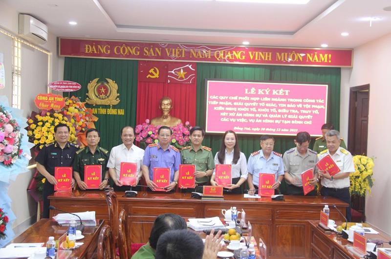 Đến dự buổi Lễ ký kết Quy chế có đại diện lãnh đạo 09 cơ quan, đơn vị tham gia ký kết, gồm: đồng chí Thiếu tướng Nguyễn Đức Hải – Ủy viên Ban Thường vụ Tỉnh ủy, Bí thư Đảng ủy, Giám đốc Công an tỉnh; đồng chí Nguyễn Quốc Hân – Tỉnh ủy viên, Bí thư Đảng ủy, Viện trưởng Viện kiểm sát nhân dân tỉnh; đồng chí Nguyễn Thị Tuyết Thanh - Tỉnh ủy viên, Bí thư Đảng ủy, Chánh án TAND tỉnh Đồng Nai; đồng chí Lê Văn Trung – Phó Chi cục trưởng Chi cục Hải quan khu vực XVIII; đồng chí Bùi Đức Hân – Phó chỉ huy trưởng Bộ chỉ huy quân sự tỉnh; đồng chí Nguyễn Tuấn Anh – Giám đốc Sở Nông nghiệp và Môi trường tỉnh; đồng chí Trần Dương Hùng – Giám đốc Sở Công thương tỉnh, đồng chí Phạm Văn Thuấn – Phó Chánh thanh tra tỉnh và đồng chí Nguyễn Toàn Thắng – Trưởng thuế tỉnh.