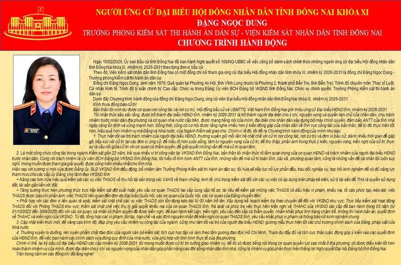 Chương trình hành động của người tham gia ứng cử đại biểu Hội đồng nhân dân tỉnh Đồng Nai: đồng chi Đặng Ngọc Dung - Trưởng phòng kiểm sát Thi hành án dân sự - Viện kiểm sát nhân dân tỉnh Đồng Nai