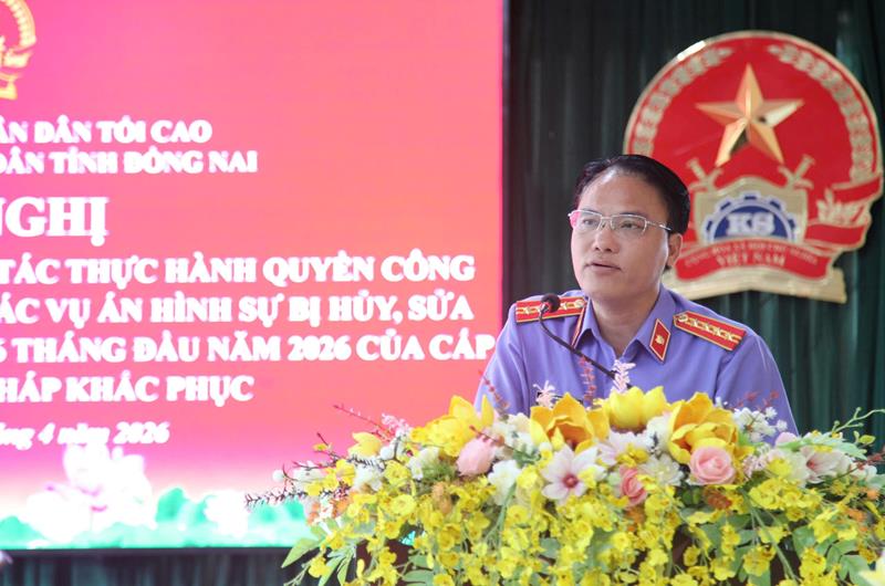 Thực hiện Kế hoạch công tác số 46/KH-VKS ngày 29/10/2025 của VKSND tỉnh Đồng Nai xác định nhiệm vụ chống oan sai, chống bỏ lọt tội phạm là nhiệm vụ xuyên suốt, quan trọng hàng đầu, trọng tâm của ngành. Ngày 10/4/2026, Phòng công tố và kiểm sát xét xử phúc thẩm, giám đốc thẩm, tái thẩm các vụ án hình sự (Phòng 7), VKSND tỉnh Đồng Nai tổ chức Hội nghị chuyên đề “Rút kinh nghiệm trong công tác thực hành quyền công tố, Kiểm sát xét xử sơ thẩm các vụ án hình sự bị hủy, sửa có lỗi Kiểm sát viên năm 2025, 06 tháng đầu năm 2026 của cấp khu vực và giải pháp khắc phục”.