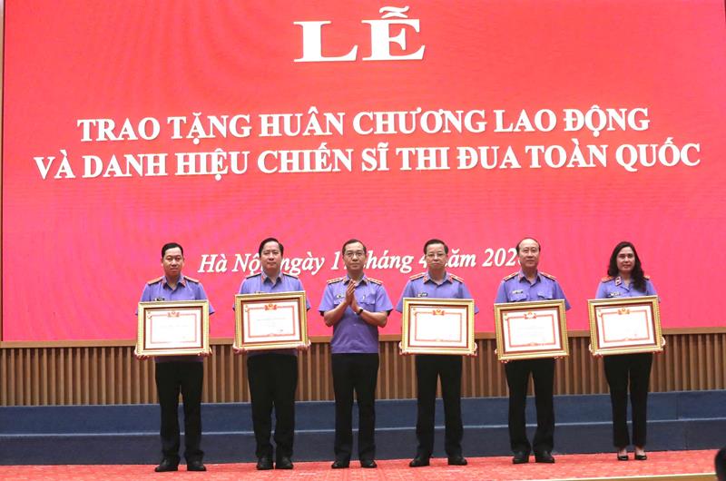Đồng chí Hồ Đức Anh – Phó Viện trưởng Thường trực VKSND tối cao trao danh hiệu “Chiến sĩ thi đua toàn quốc” cho đồng chí Nguyễn Quốc Hân – Viện trưởng VKSND tỉnh Đồng Nai và các cá nhân có thành tích đặc biệt xuất sắc