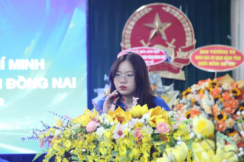 Đồng chí Nguyễn Tuyết Nhung – Bí thư Đoàn các cơ quan Đảng tỉnh Đồng Nai phát biểu tại Đại hội