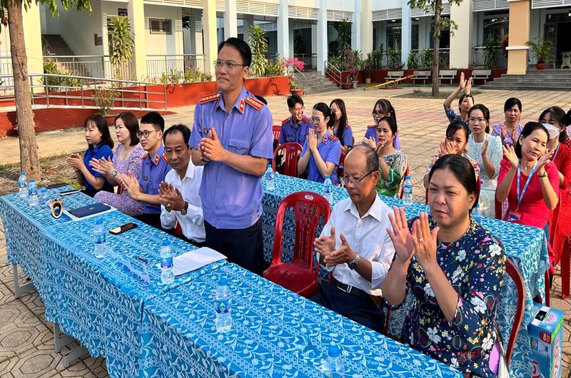 Đồng chí Ngô Văn Đạt, Ủy viên Ban Thường vụ Đảng ủy, Phó Viện trưởng VKSND tỉnh Đồng Nai cùng đoàn viên Chi đoàn VKSND tỉnh Đồng Nai và Ban giám hiệu, giáo viên nhà trường