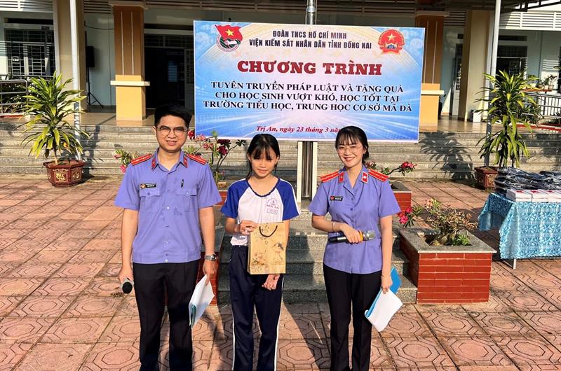 Kết hợp với hoạt động tuyên truyền pháp luật, nhằm động viên tinh thần học tập, khuyến khích các em vươn lên trong cuộc sống, Chi đoàn VKSND tỉnh Đồng Nai đã trao tặng các phần quà cho các em học sinh có hoàn cảnh khó khăn từ nguồn kinh phí quỹ Chi đoàn do tập thể đoàn viên VKSND tỉnh Đồng Nai đóng góp. Bên cạnh đó còn có thêm sự hỗ trợ của Đảng ủy, Đoàn cơ sở VKSND tỉnh và sự ủng hộ của một số cán bộ, công chức VKSND tỉnh Đồng Nai.