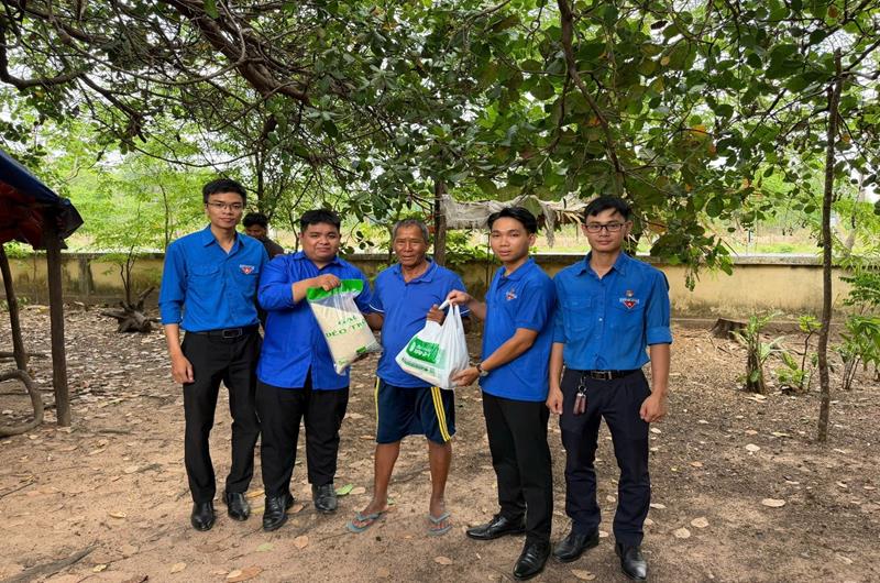 Bên cạnh đó, Đoàn đã đến thăm hỏi, tặng quà 02 hộ gia đình có hoàn cảnh đặc biệt khó khăn tại ấp Tà Thiết. Cụ thể, đoàn đã trao quà cho bà Thị Smớt (sinh năm 1952), hiện sống đơn thân, tuổi cao sức yếu, gặp khó khăn trong sinh hoạt do di chứng tai nạn giao thông và anh Điều Minh Sáu (sinh năm 1986), bị tai nạn giao thông dẫn đến mất khả năng nhận thức, hiện đang sống cùng người cha già và hai con nhỏ trong điều kiện hết sức thiếu thốn.
