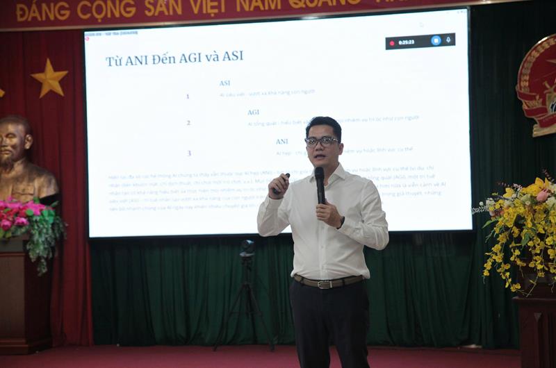 Chuyên gia Nguyễn Văn Tuyền - Giám đốc học viện đào tạo AI giới thiệu các nội dung trong chuyên đề Trí tuệ nhân tạo tại lớp tập huấn. Chuyên gia Nguyễn Văn Tuyền - Giám đốc học viện đào tạo AI giới thiệu các nội dung trong chuyên đề Trí tuệ nhân tạo tại lớp tập huấn.