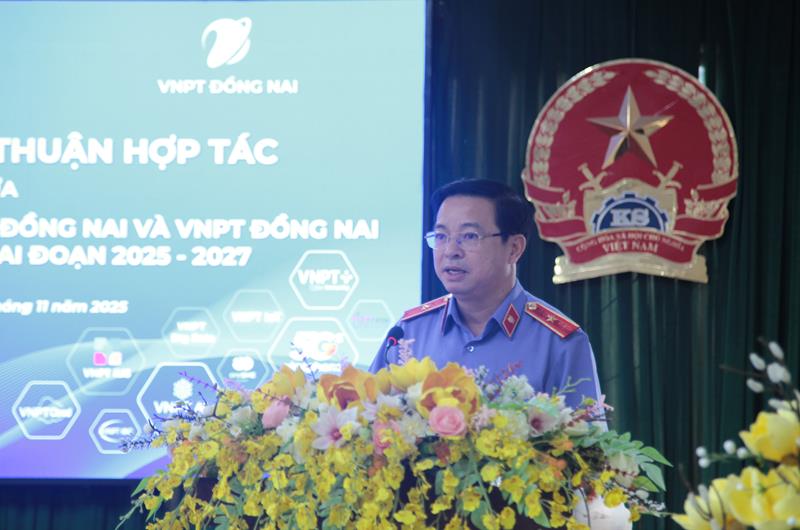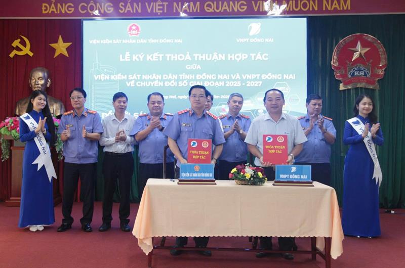 Ngày 19/11/2025, Viện kiểm sát nhân dân (VKSND) tỉnh Đồng Nai và VNPT Đồng Nai đã long trọng tổ chức Lễ ký kết Thỏa thuận hợp tác về chuyển đổi số. Buổi lễ được tổ chức trực tiếp tại Hội trường trụ sở chính VKSND tỉnh kết hợp trực tuyến đến 14 điểm cầu VKSND khu vực. Đây là sự kiện có ý nghĩa quan trọng, đánh dấu bước phát triển mới trong tiến trình đẩy mạnh ứng dụng công nghệ thông tin, xây dựng nền tảng chuyển đổi số đồng bộ, hiện đại trong ngành Kiểm sát Đồng Nai.