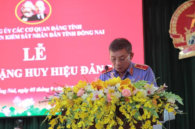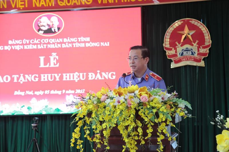 Phát biểu tại buổi lễ, đồng chí Nguyễn Mạnh Thắng, Phó Bí thư Đảng uỷ, Phó Viện trưởng VKSND tỉnh Đồng Nai thay mặt 03 đồng chí Đảng viên nhận Huy hiệu 30 năm tuổi Đảng bày tỏ niềm xúc động và rất vinh dự khi được nhận Huy hiệu 30 năm tuổi Đảng; thay mặt các đồng chí nhận Huy hiệu 30 năm tuổi Đảng gửi lời cảm ơn chân thành và sâu sắc tới Ban Thường vụ Đảng ủy, lãnh đạo VKSND tỉnh, tới các chi bộ, các tổ chức đoàn thể và toàn thể cán bộ, công chức, người lao động trong đơn vị đã luôn tin tưởng, tạo điều kiện và đồng hành cùng trong suốt chặng đường công tác và phấn đấu. Đồng chí bày tỏ sẽ tiếp tục phát huy vai trò tiên phong của người cán bộ đảng viên, không ngừng rèn luyện, tu dưỡng đạo đức cách mạng, luôn phấn đấu hoàn thành tốt mọi nhiệm vụ được giao.