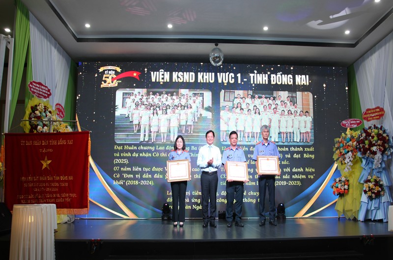 Nhân dịp này, UBND tỉnh Đồng Nai đã trao tặng bức trướng cho tập thể VKSND tỉnh và tặng bằng khen cho 3 tập thể, 10 cá nhân có thành tích xuất sắc trong công tác. Đây là sự ghi nhận xứng đáng cho những nỗ lực, cống hiến của ngành trong thời gian qua.