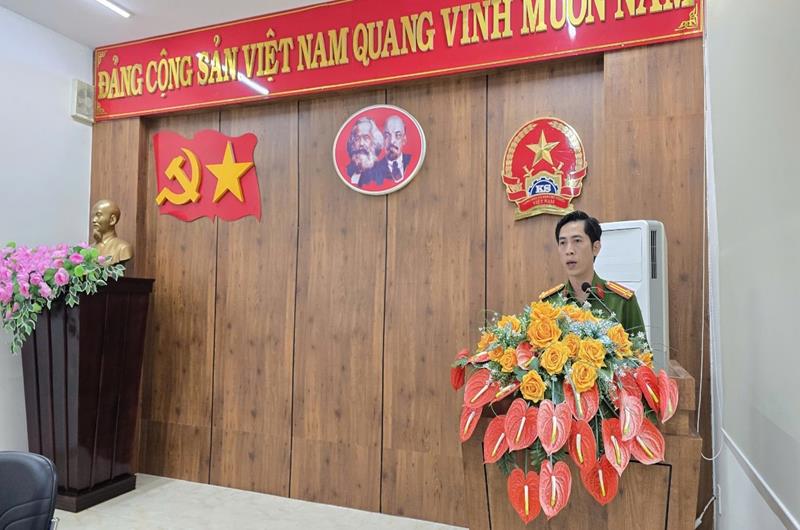 Đại diện phòng P01 Công an tỉnh phát biểu tham luận