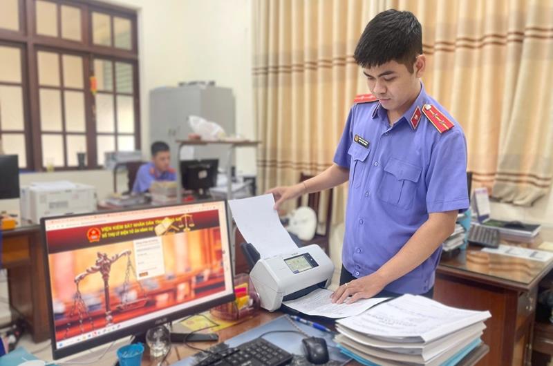Cán bộ đang thực hiện số hóa hồ sơ vụ việc