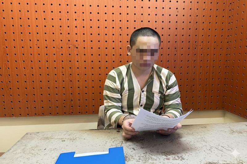 Bị can Bùi Minh Trí trong buổi làm việc với Viện kiểm sát tại Cơ sở giam giữ