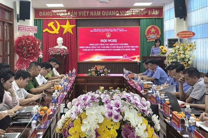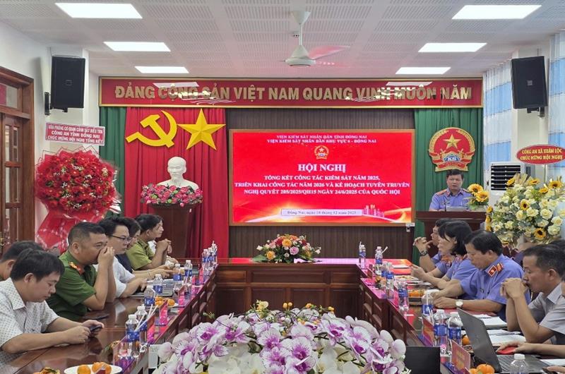 Phát biểu chỉ đạo tại Hội nghị, đồng chí Phan Văn Phong – Phó Viện trưởng VKSND tỉnh Đồng Nai ghi nhận và biểu dương những kết quả mà VKSND khu vực 6 – Đồng Nai đã đạt được trong năm 2025. Đồng chí đánh giá cao việc đơn vị chủ động nghiên cứu, quán triệt và tuyên truyền việc thực hiện Nghị quyết số 205/2025/QH15 của Quốc hội, thể hiện tinh thần trách nhiệm, kịp thời thích ứng với nhiệm vụ mới được giao. Trong thời gian tới, đồng chí yêu cầu đơn vị tiếp tục phát huy tinh thần đoàn kết, trách nhiệm, chủ động đổi mới phương pháp làm việc, nâng cao hơn nữa chất lượng thực hành quyền công tố và kiểm sát hoạt động tư pháp, bảo đảm thực hiện hiệu quả các nhiệm vụ được giao.