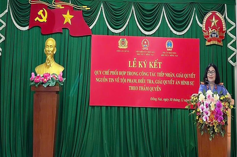 Nhằm tăng cường hiệu lực, hiệu quả công tác phối hợp giữa các cơ quan tố tụng trong việc thực hiện chức năng, nhiệm vụ theo quy định của pháp luật, ngày 30/12/2025, Viện kiểm sát nhân dân (VKSND) Khu vực 1 – Đồng Nai đã phối hợp với Tòa án nhân dân (TAND) Khu vực 1 – Đồng Nai và Công an các phường, Đồn Công an Khu công nghiệp Biên Hòa tổ chức Lễ ký kết Quy chế phối hợp liên ngành trong công tác tiếp nhận, giải quyết tố giác, tin báo về tội phạm, kiến nghị khởi tố và việc thực hiện thẩm quyền của Điều tra viên được ủy quyền điều tra, giải quyết án hình sự tại Công an cấp xã.