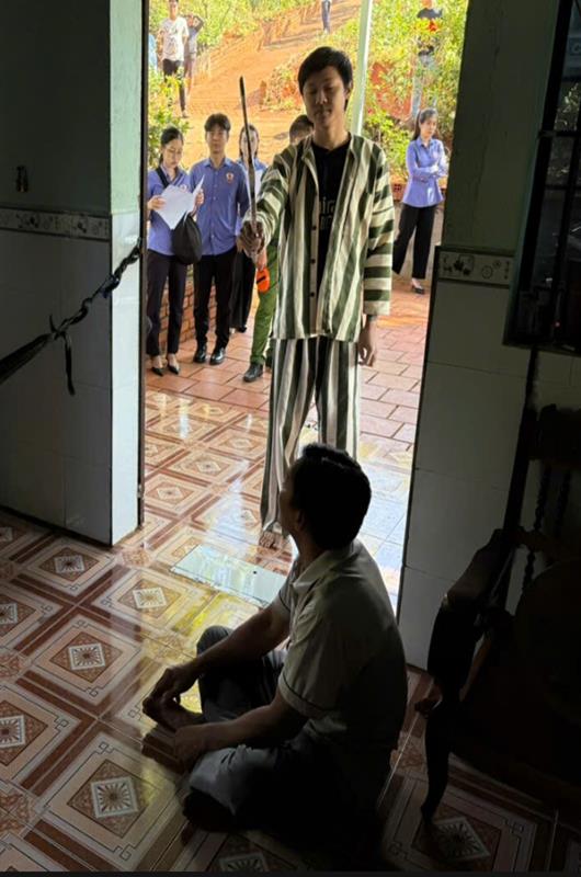 Đáng chú ý, buổi thực nghiệm còn có sự tham gia theo dõi, học tập của các sinh viên đang thực tập tại Viện kiểm sát khu vực 10 – Đồng Nai. Dưới sự hướng dẫn của cán bộ nghiệp vụ, các sinh viên được quan sát trực tiếp toàn bộ quy trình thực nghiệm, từ khâu chuẩn bị hiện trường, yêu cầu người liên quan tái hiện hành vi cho đến việc lập biên bản và thu thập tài liệu. Đây là hoạt động thực tiễn giúp sinh viên có cái nhìn cụ thể, sinh động về công tác tố tụng hình sự, góp phần nâng cao kiến thức và kỹ năng nghề nghiệp trong tương lai.