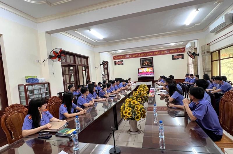 Cán bộ công chức VKSND Khu vực 1 dự trực tuyến lễ khai mạc Đại Hội Đảng