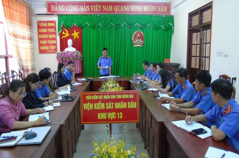 Trong thời gian qua, chi bộ Viện kiểm sát nhân dân (VKSND) Khu vực 13, tỉnh Đồng Nai luôn quan tâm và thực hiện nghiêm sinh hoạt chi bộ và sinh hoạt Chuyên đề theo quy định của Điều lệ Đảng, nhằm đảm bảo sự lãnh đạo toàn diện của Đảng, nâng cao năng lực lãnh đạo, sức chiến đấu của tổ chức đảng và đảng viên, xây dựng chi bộ ngày càng trong sạch, vững mạnh.