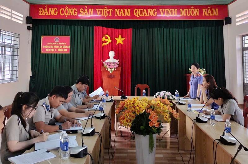 Thực hiện Quyết định số 115/QĐ-KSTHADS và Kế hoạch số 116/KH-KSTHADS ngày 24/02/2026 của Viện trưởng Viện kiểm sát nhân dân khu vực 5-Đồng Nai. Ngày 02/03/2026, Viện kiểm sát nhân dân khu vực 5 đã trực tiếp kiểm sát việc tuân theo Pháp luật trong công tác Thi hành án dân sự tại Phòng Thi hành án dân sự khu vực 5-Đồng Nai. Đoàn kiểm sát do đồng chí Vũ Thị Lan Anh - Phó Viện trưởng làm Trưởng đoàn cùng các đồng chí Kiểm sát viên phụ trách công tác kiểm sát thi hành án dân sự.