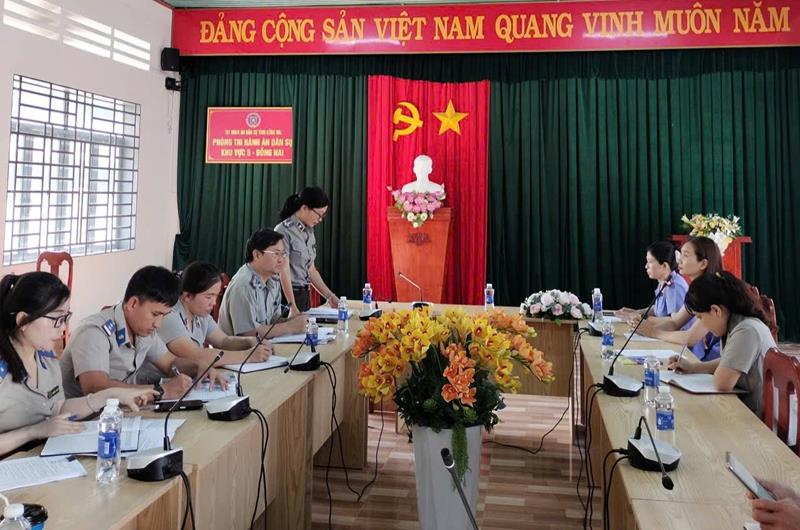Sau khi nghe đồng chí Hồ Thị Vân Giang - Trưởng Phòng Thi hành án dân sự khu vực 5-Đồng Nai báo cáo kết quả tình hình thực hiện công tác Thi hành án dân sự trong thời gian từ ngày 01/10/2025 đến ngày 01/02/2026. Trên cơ sở báo cáo, Viện kiểm sát nhân dân khu vực 5 đã tiến hành kiểm sát các hồ sơ, sổ sách và các tài liệu liên quan đến việc thực hiện việc tuân theo pháp luật trong công tác thi hành án dân sự của Phòng Thi hành án dân sự khu vực 5 trong thời gian qua.
