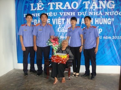 Lãnh đạo Viện kiểm sát nhân dân huyện Trảng Bom tặng quà và nhận phụng dưỡng mẹ viết nam anh hùng Giáp Thị Tiếp suốt đời